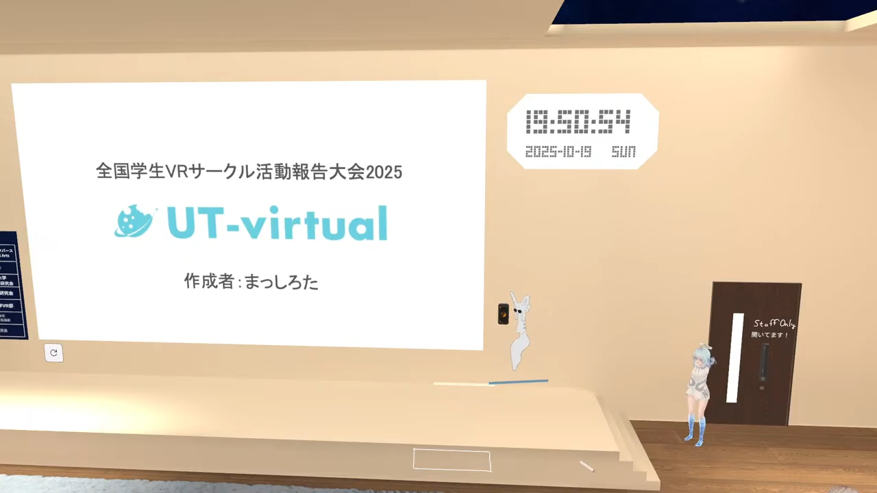 2025年10月18日・19日、NUMAはUT-virtualとともに、全国学生VRサークル活動報告大会 & XR制作物プレゼン 2025 を開催しました。